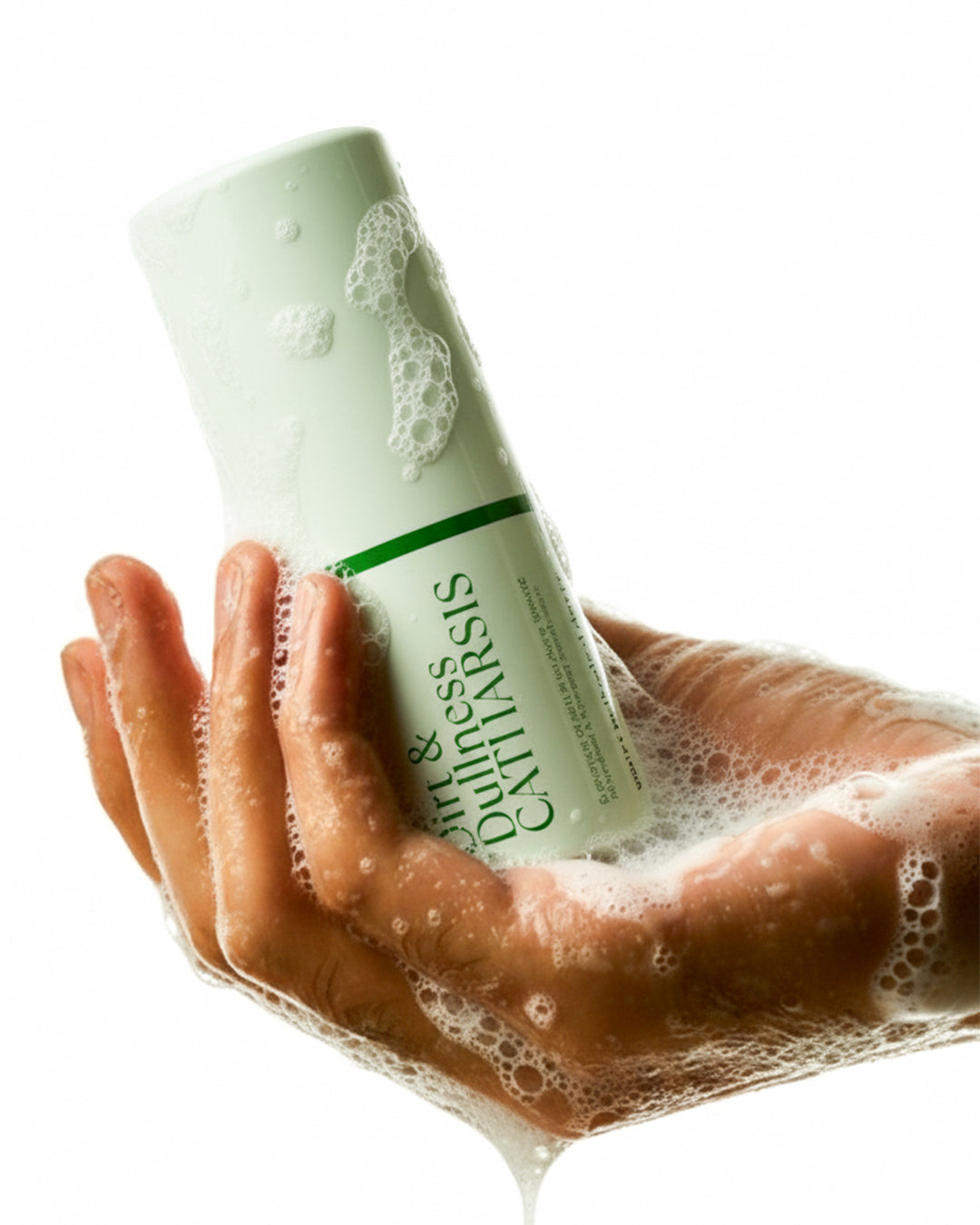 Dirt & Dullness Catharsis is a high performance cleansing treatment. It efficiently dissolves makeup & surface impurities while gently exfoliating dead skin cells. Green Tomato extract helps soothe inflammation. Matcha extract is high in EGCG (epigallocatechin gallate), a potent antioxidant that helps inhibit growth of acne causing bacteria. Formulated with skin integrity in mind, this cleanser preserves the moisture barrier & guards against dehydration, fortified with Ceramides NP to maintain optimal hydration & long term skin health.